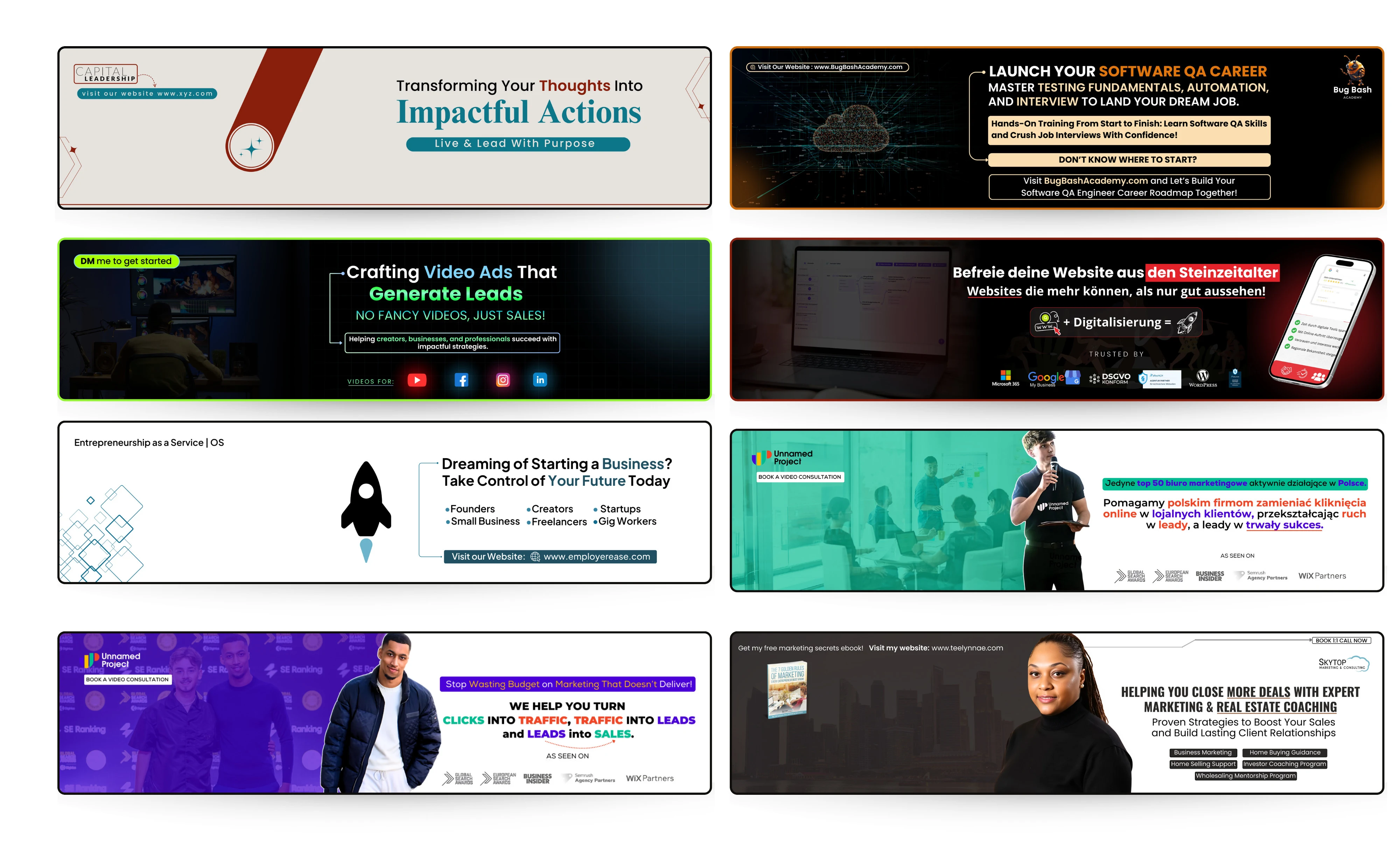 We craft professional banners, carousels, thumbnails, and video edits that not only look stunning but also convert.