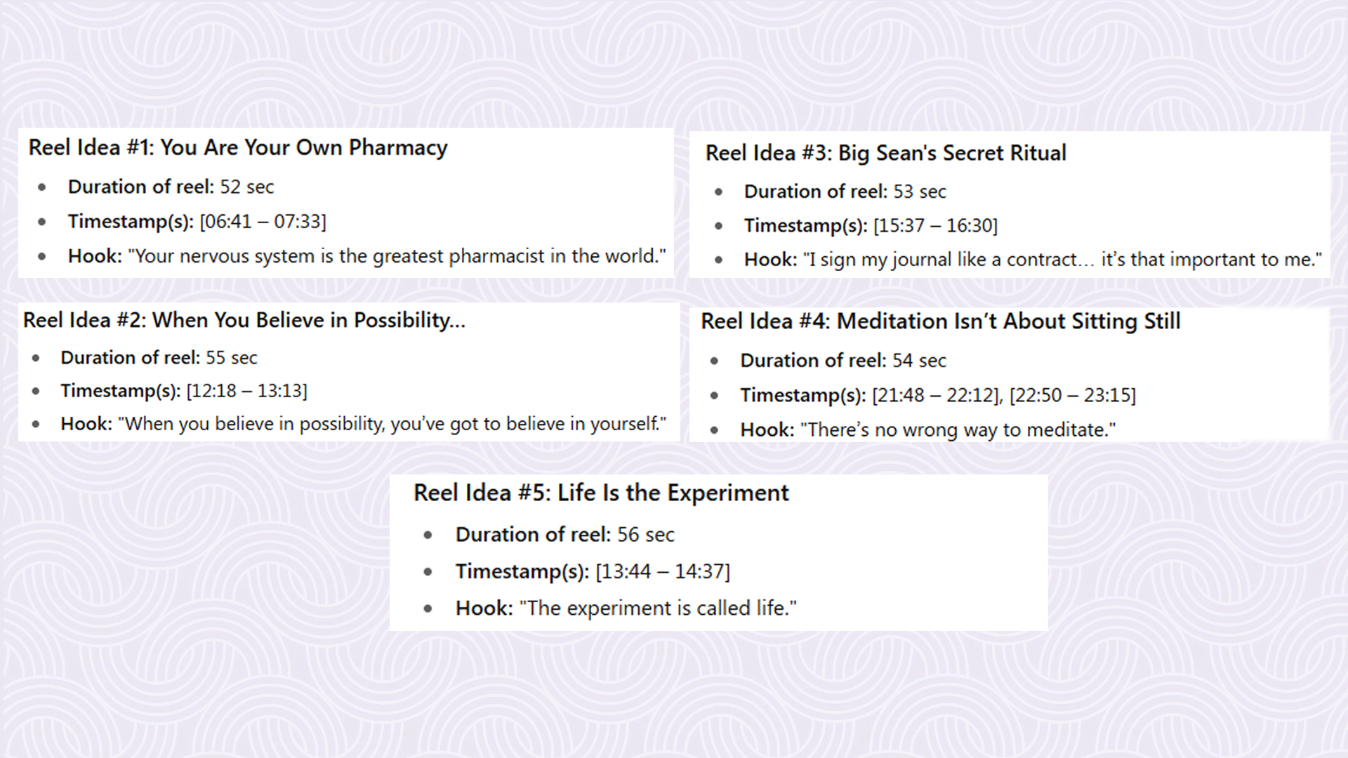 Our system scans your video or script, identifies high-engagement moments, and generates ready-to-use timestamps and clips.